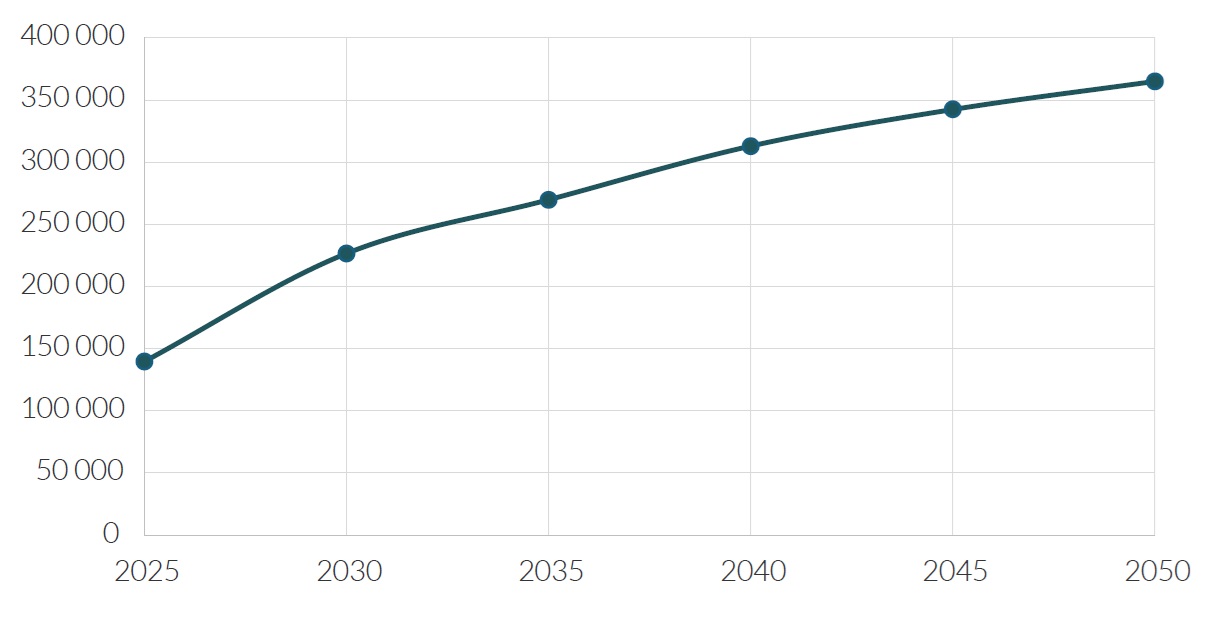 Figur 1. Prognos för scenario med elektrifiering och utbyggnad av planerbar kraft, GWh/år. Svenska Kraftnät, 2024.