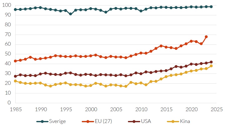 Figur 2. Andelen el med låga utsläpp av energimixen