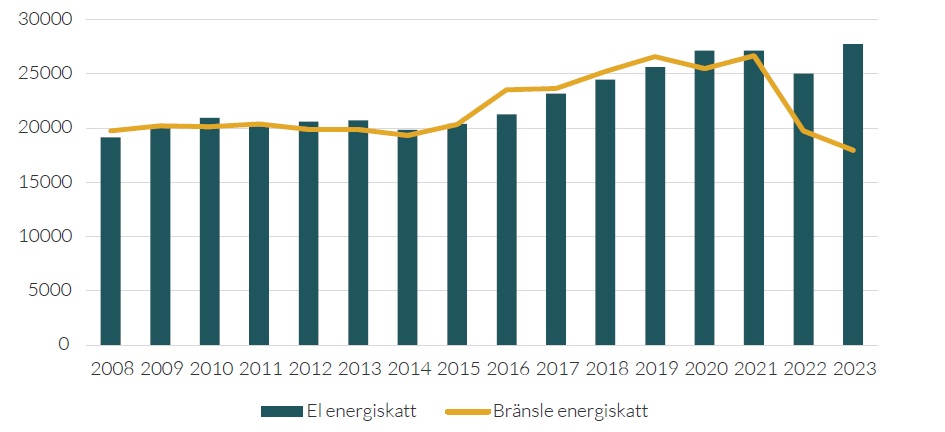 Energi är en insatsvara i samtliga varor och tjänster. Höga skatter och avgifter gör det dyrare för alla hushåll och företag. Två tredjedelar av elkostnaden består av skatter och avgifter för de flesta företag och hushåll. KPI har ökat med 110 procent sedan 1990; elskatten har ökat med drygt 600 procent under samma period.