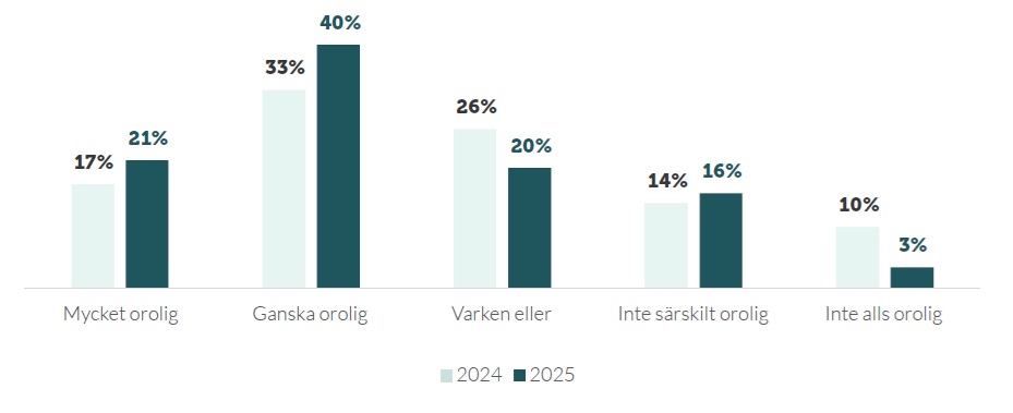 Företagarna har sedan tidigare undersökt hur oroliga småföretag är över högre elpriser. Oro har en stor påverkan på många företagare, och hämmar företagare vilja och möjlighet att investera och utvidga sin verksamhet. En ökad oro får direkta konsekvenser i färre investeringar och färre nya jobb.