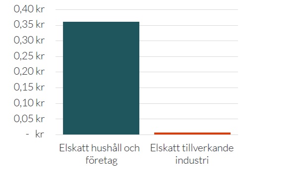 Sammantaget har Sverige en hög skatt på el, men de mest energikrävande processerna är generellt nästintill befriade från elskatt.