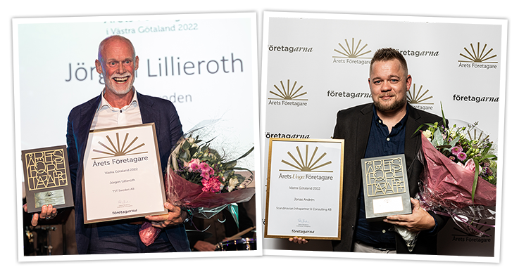 Årets Företagare i Västra Götaland 2022 korades under en galakväll den 1 september på Hotel The Weaver i Mölndal. Det blev Jörgen Lillieroth, som med sitt företag TST Sweden AB i Borås, fick ta emot den ärofyllda utmärkelsen. Till Årets Unga Företagare utsågs Jonas Andrén, som driver företaget Scandinavian Infra Partner & Consulting i Dals-Ed.