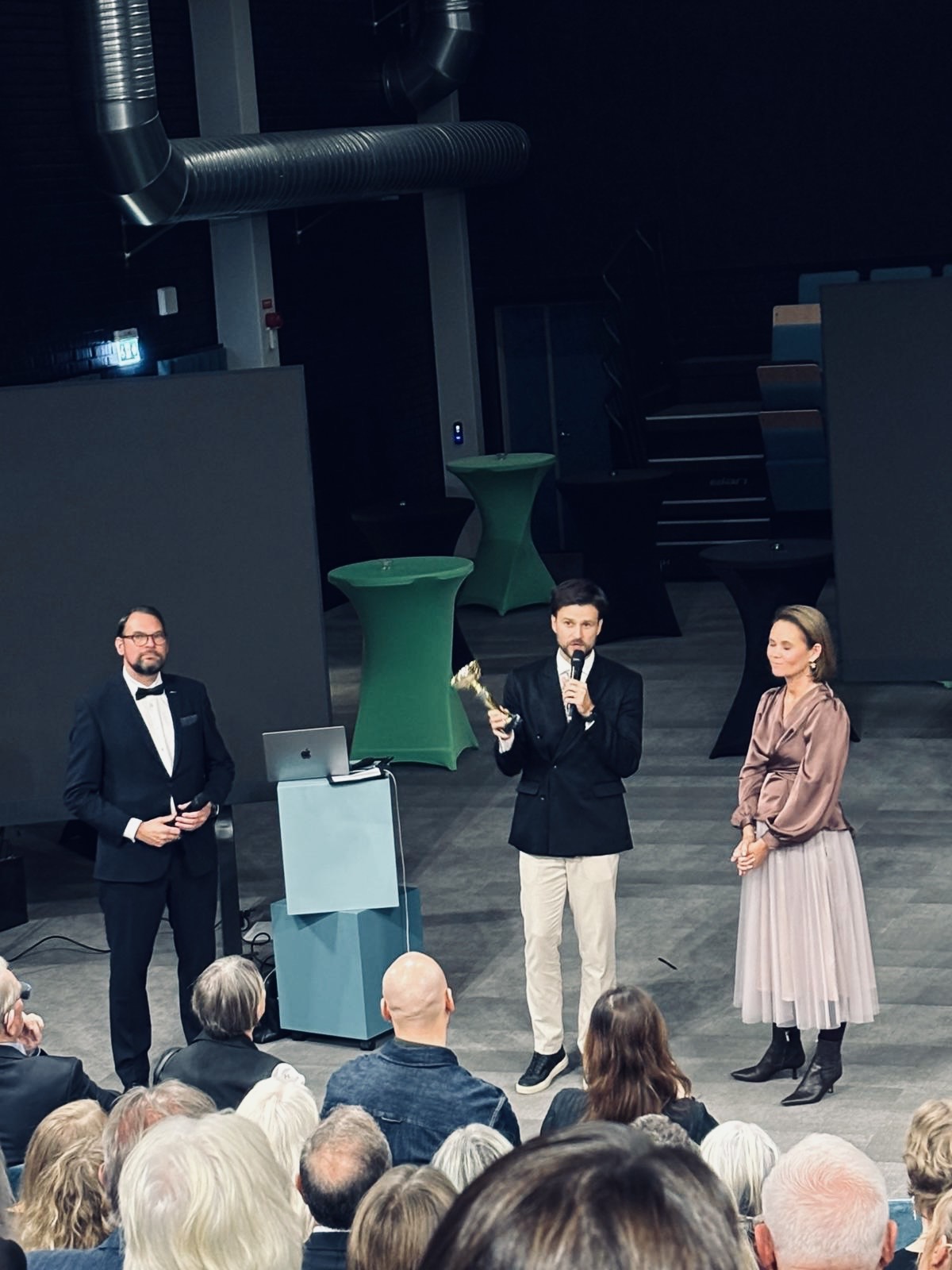 Halldora Von Koenigsegg är på scen tillsammans med lokala ordförande Drazen och regionchef Magnus.