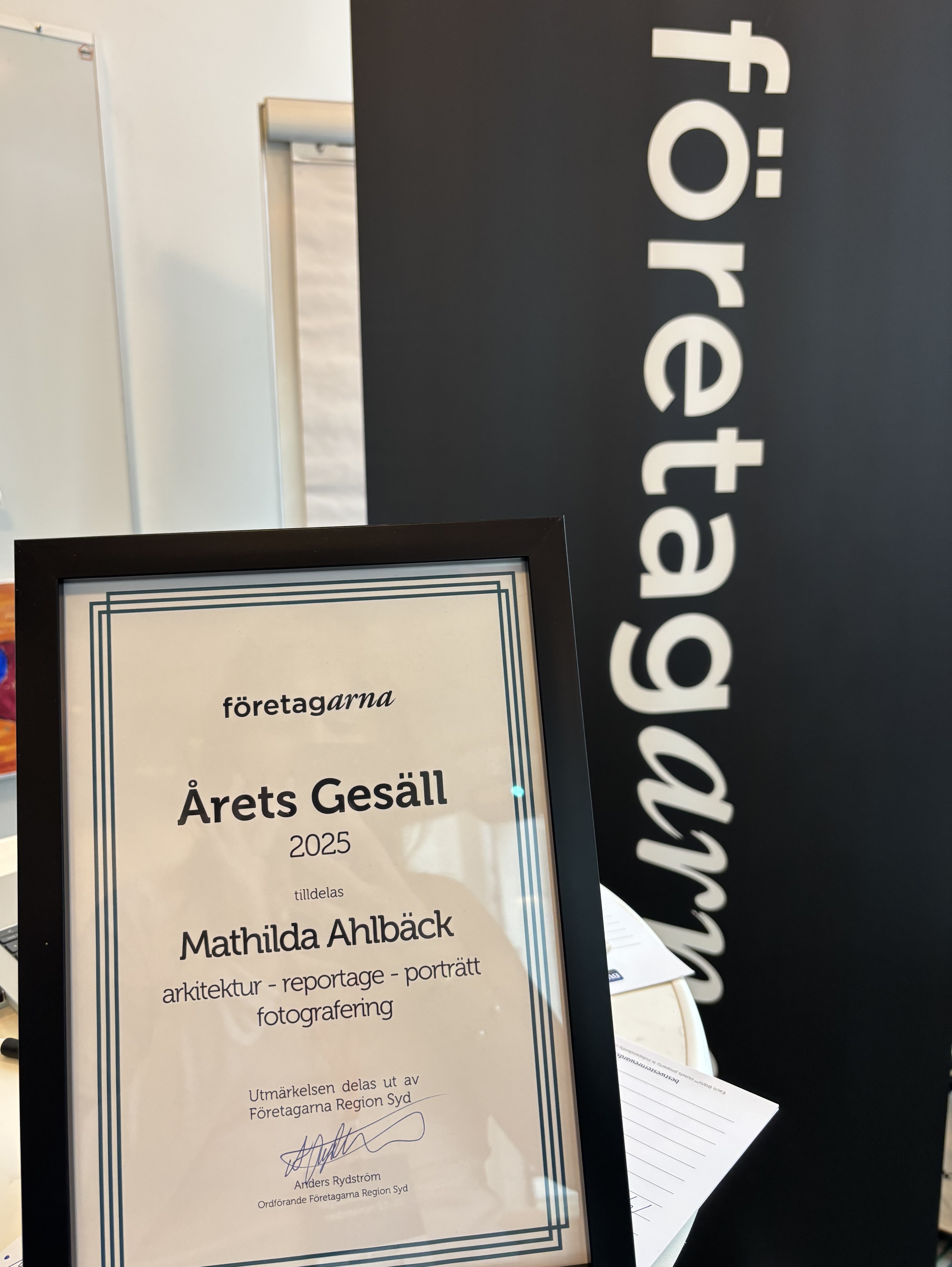 Fotografer kan ta gesällbrev inom fyra kategorier – Mathilda satsade stort och är nu gesäll i tre av dessa (arkitektur, reportage och porträtt). Hon har en förhoppning om att kunna ta mästarbrev – när tiden tillåter. Även gesällbrev i den återstående kategorin, produktfotografering.