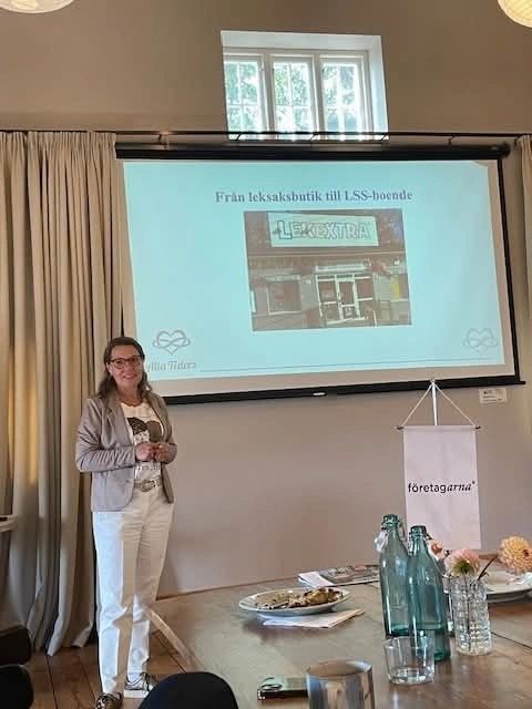 Vi fick bl a en fin presentation av Jennie Lewén som berättade om sin inspirerande företagsresa från leksaksbutik till LSS-boenden och Alla Tiders Omsorg AB. Tack vare Jennie har flera av kommunens unga med funktionsvariation kunnat flytta hemifrån till ett eget boende. Tack för ditt stora och varma engagemang Jennie!