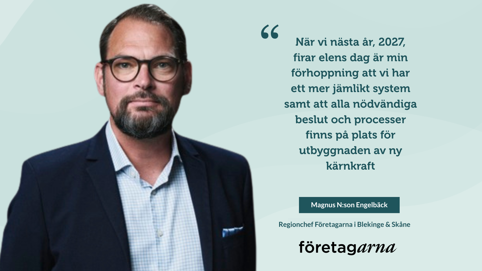 – När vi nästa år firar elens dag är min förhoppning att vi har ett mer jämlikt system samt att alla nödvändiga beslut och processer finns på plats för utbyggnaden av ny kärnkraft, säger N:son Engelbäck.