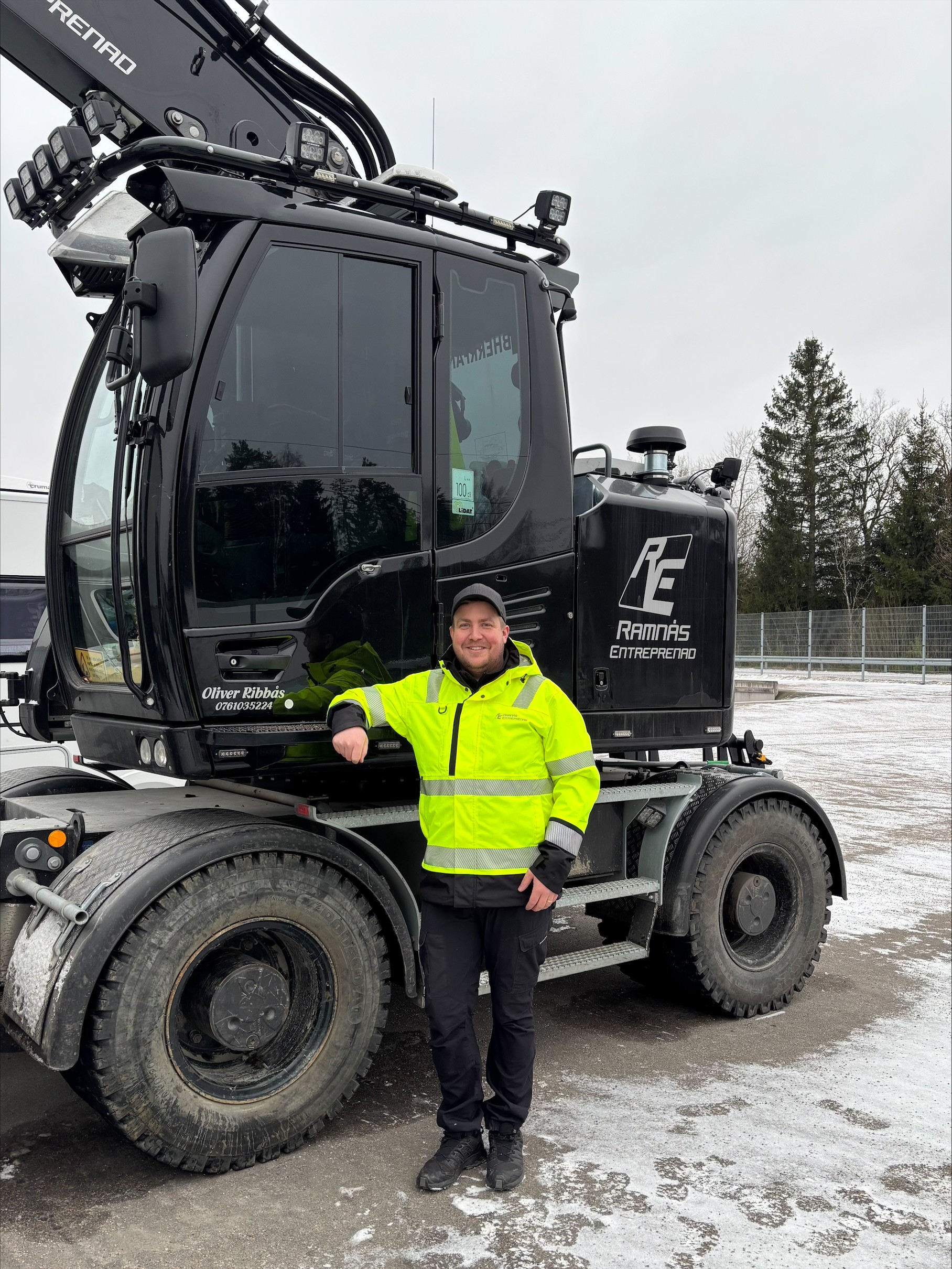 Stödet från omgivningen har varit avgörande. Möjligheten att köpa sin maskin via Unnaryds Transport blev ett viktigt avstamp, liksom mentorskap och rådgivning från kollegor i branschen. En av dem är Marcus, vd på Kenneths Bygg, där Oliver även har möjlighet att ha maskinen uppställd.