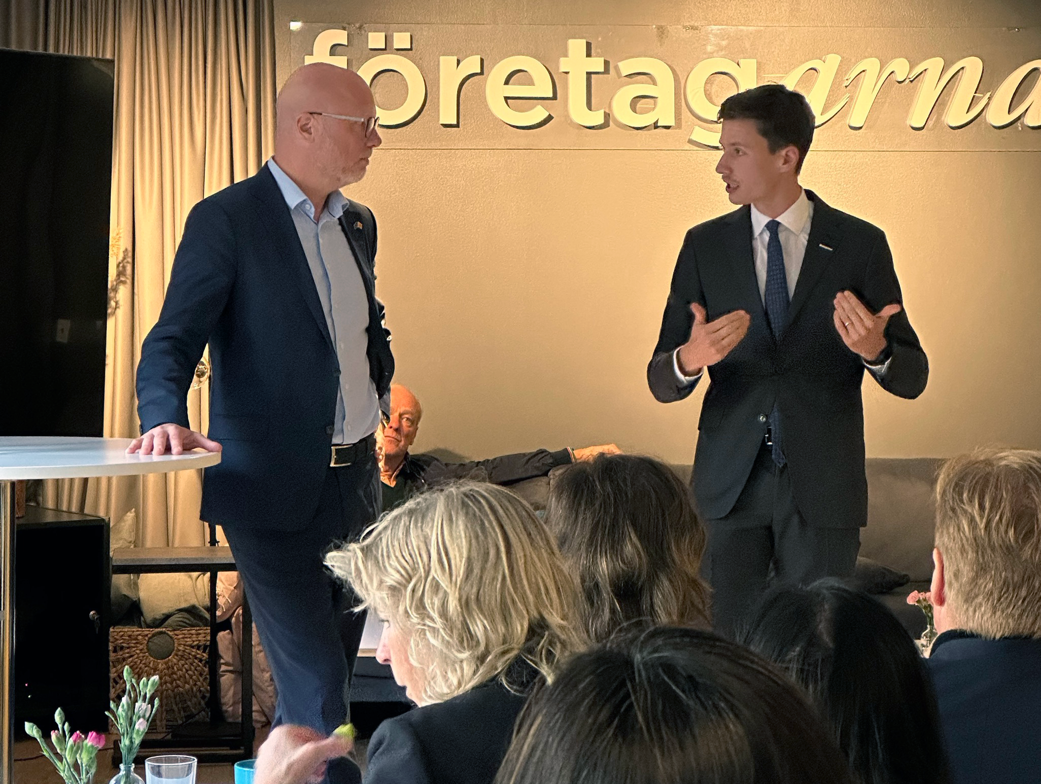 Huvudtalare på tisdagens afterwork var europaparlamentarikern Jörgen Warborn (M), som kallar sig småföretagarens bästa vän. Han har suttit i Europaparlamentet sedan 2019 och står på tredje plats på Moderaternas valsedel. Men innan han började prata inledde Tobias Adielsson, Företagarnas expert på brott mot företagare, det hela med att belysa den ökande omfattningen av bedrägerier och organiserad brottslighet som riktar in sig på företag och företagare. Brottslighet som inte sällan är gränsöverskridande.