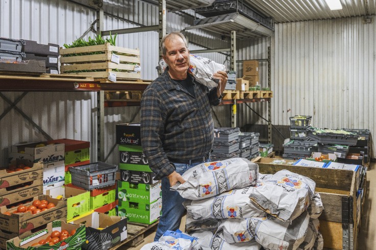 Hans Eliasson tar emot en ny leverans till snabbgrossen i Rättvik.