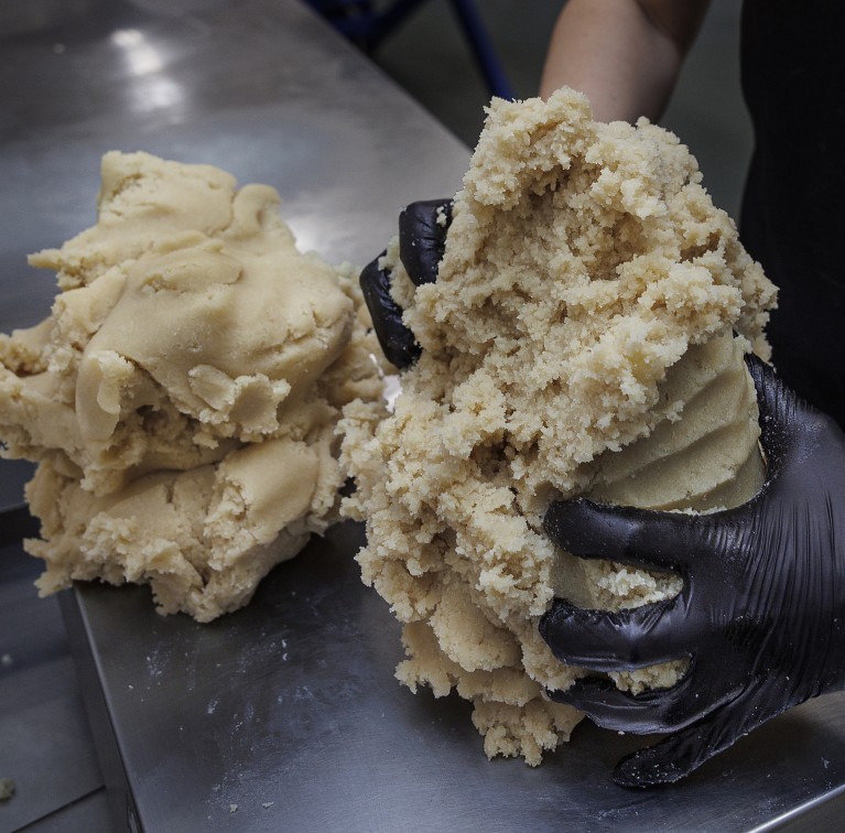 I fjol tillverkade de mellan 13 och 14 ton mandelmassa under årets första åtta veckor, vilket motsvarade ungefär halva årsförsäljningen. Trots att de ibland nästan går på knäna under den perioden har de valt att inte säsongsanställa. Om de behöver vabba eller blir sjuka brukar de ta igen sig så länge det behövs och sedan jobba ikapp på kvällar och helger.