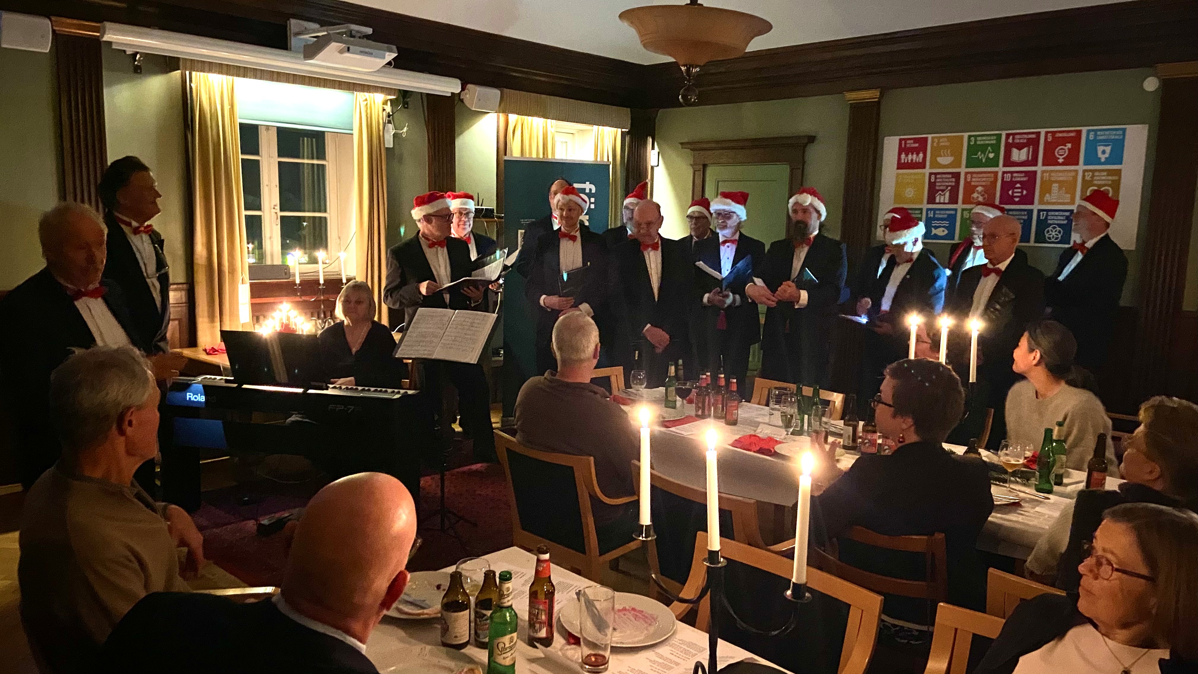 Därefter tog kvällens musikaliska höjdpunkt vid: ett a cappella-framträdande som fyllde rummet med klar stämsång och julmagi.