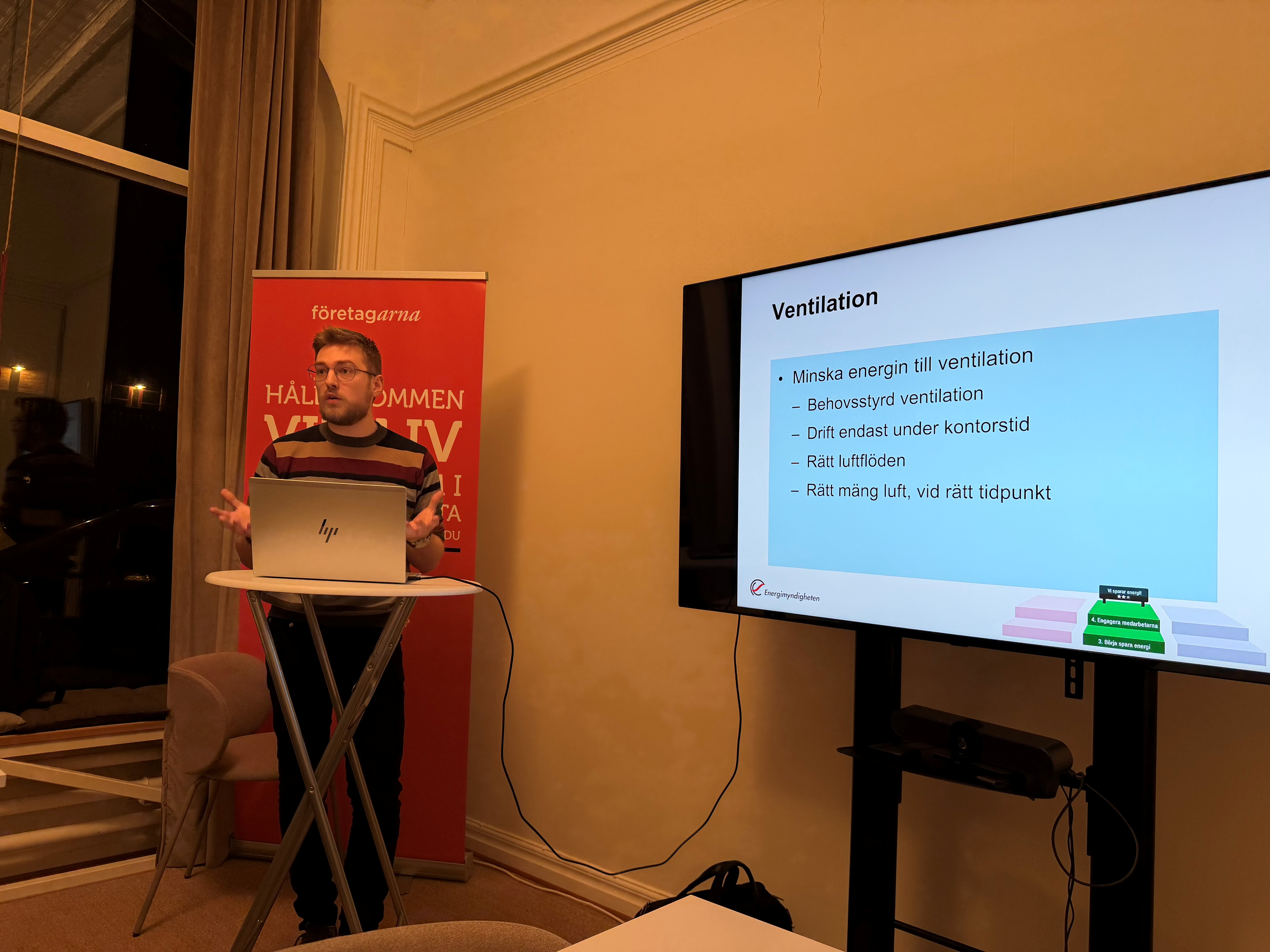 Under träffen fick deltagarna också inspiration kring hur företag kan arbeta mer strategiskt med sin energianvändning. Energi- och klimatrådgivare Hampus Schultz lyfte att energieffektivisering inte bara handlar om klimatet utan också om ekonomi och konkurrenskraft.
