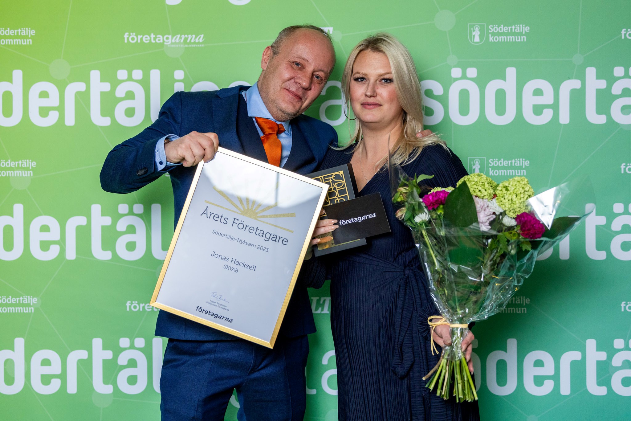 Årets Företagare Södertälje 2023 - Skyab. På galan representerade av Patric Lindroos och Frida Hedman