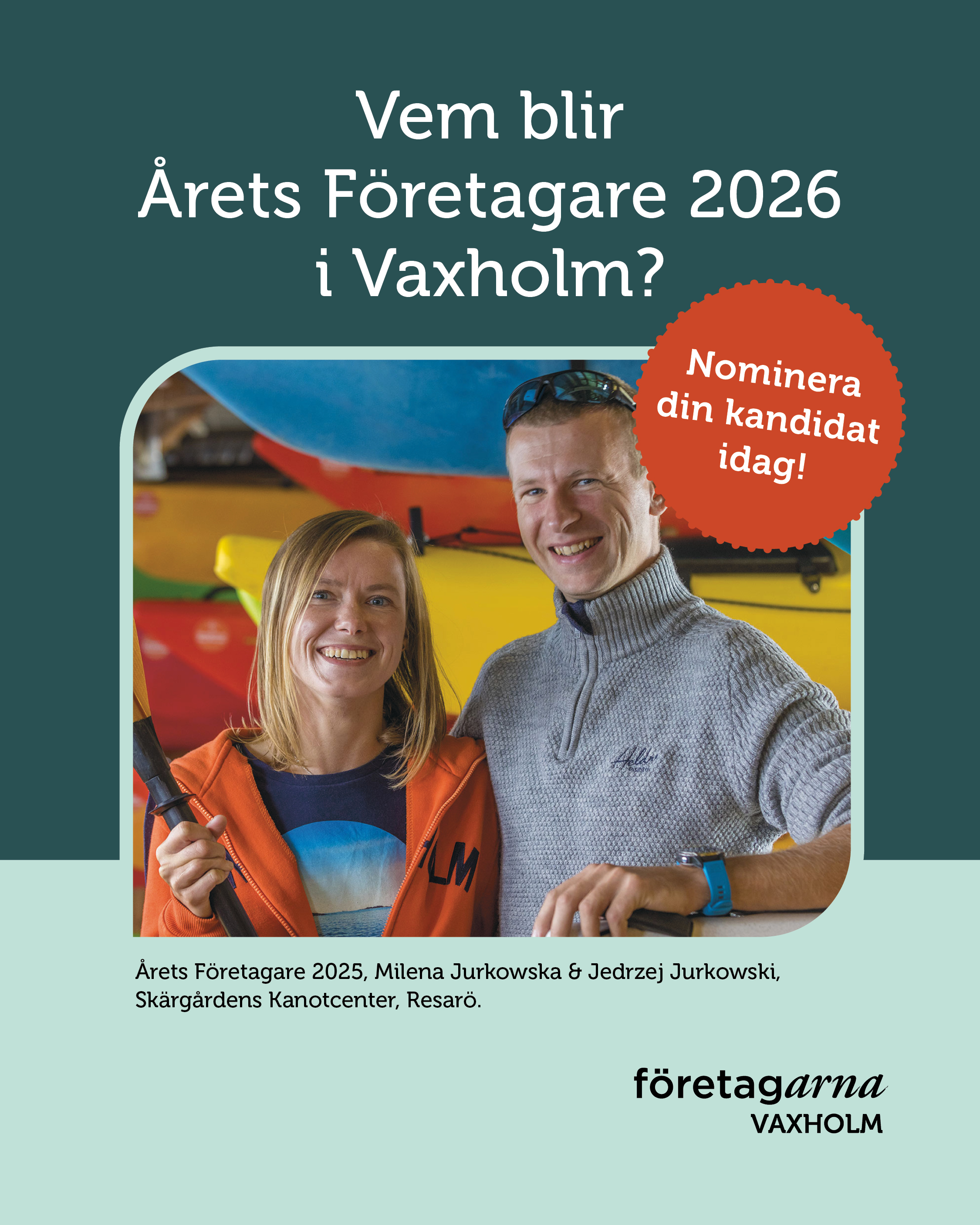 Den som utses till Årets företagare i Vaxholm går vidare till regionfinalen och konkurrerar där om utmärkelsen Årets företagare i Stockholms län. Nomineringsblankett finns här och sista dag för nominering är den 13 april 2026. För att din nominering ska behandlas måste du motivera varför just din kandidat bör bli Årets företagare.