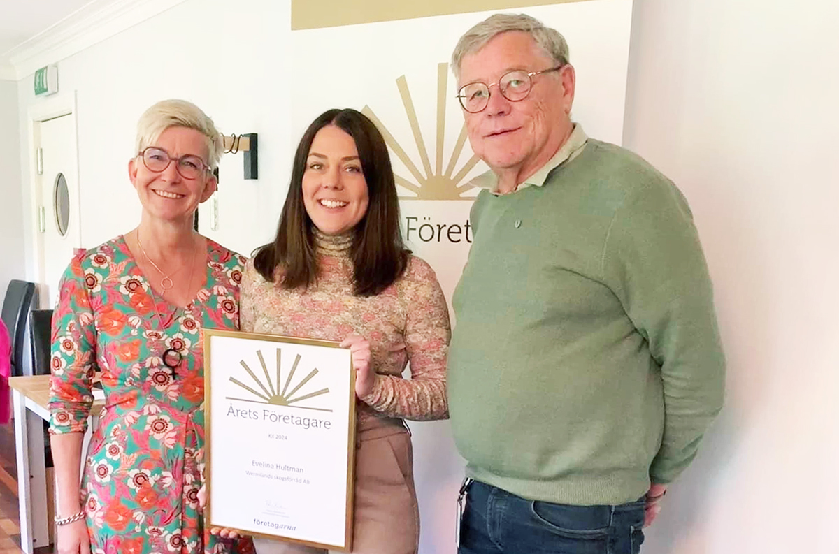 Det var under en företagarlunch som Evelina Hultman på Wermlands Skogsförråd AB fick ta emot utmärlelsen Årets Företagare i Kils Kommun 2024.