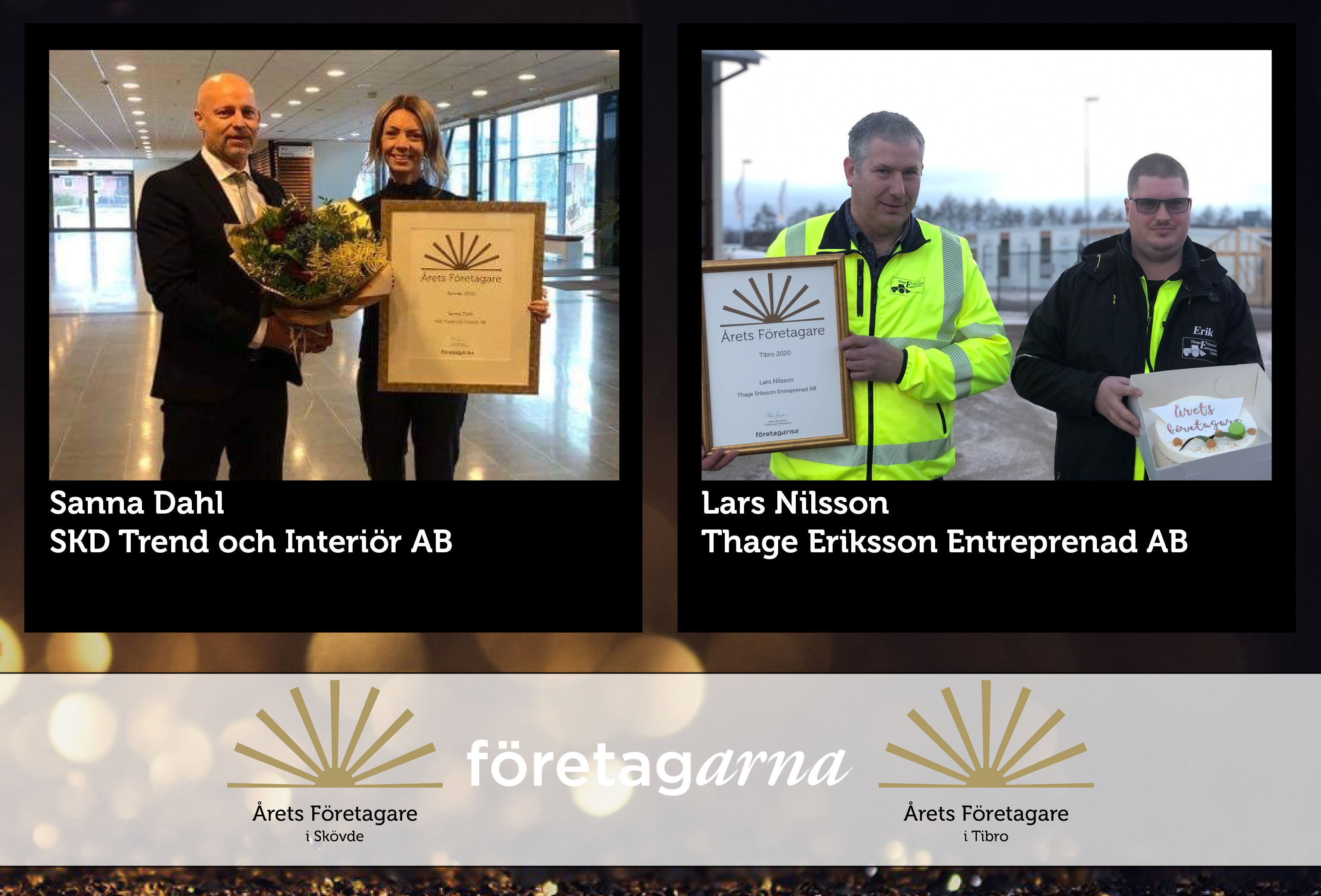Årets företagare utses av Företagarna Skövde-Tibro och delas ut till den företagare som under året utfört prestation i samhället/näringslivet/Skövde & Tibro och som genom sitt sätt att vara fungerar som en förebild för andra företagare.