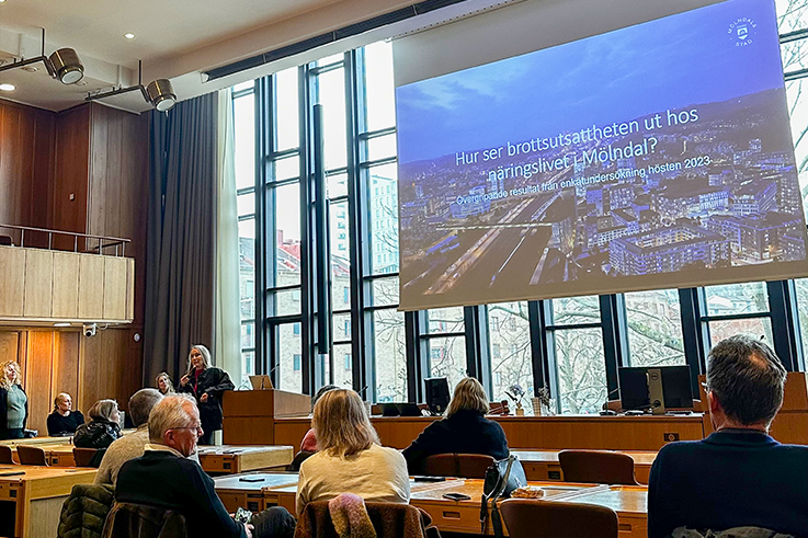 Näringslivsenheten visade också resultatet av en trygghets-undersökning som kommunen genomfört bland företagen. Företagen i Mölndal är generellt mer trygga jämfört med andra kommuner men kommunen arbetar fortsatt med att öka tryggheten. Kommunen ser gärna att fler företagare är med i arbetet och delar med sig av hur man blir utsatt för brott så att man kan ta fram åtgärder. Det lyftes också att det är viktigt att polisanmäla alla brott så att Polisen får in rätt statistik.