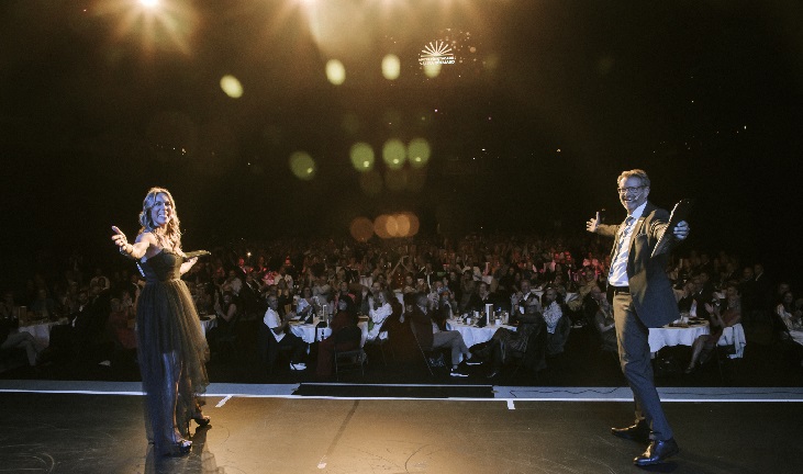 Kvällen startade med välkomstdrink och mingel, innan gästerna satte sig till bords i arenahallen. Regionchef Mikael Erlandson och kvällens konferencier Åsa Eriksson kom ut från den Volvo EX30 som stod placerad på scenen och hälsade alla välkomna. Mikael hyllade alla deltagande företagare genom att berätta att i vår region står de små och medelstora företagen för fler än 360 000 arbetstillfällen. Dessa arbetstillfällen genererar mer än 25 miljarder kronor i inkomstskatter. Bakom dessa siffror står det tusentals företagare och 130 av dem har blivit Årets Företagare eller Årets Unga Företagare i sin kommun under senaste året. Dessa 130 vinnare, som representerar 75 olika företag, skapar tillsammans närmare 1 400 arbetstillfällen. På listan av vinnarföretag kan vi hitta allt från soloföretag till större företag, det största med över 200 anställda.