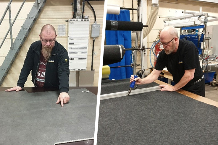 – Spillbitar av pressad nålfilt blir skrivbordsunderlägg och mattrester blir ytskikt till bänkar eller hyllor. Det är både klimatsmart och ekonomiskt. För småföretag kan samarbeten med UF-elever, prao-elever eller sommarjobbare vara ett bra sätt att genomföra detta.