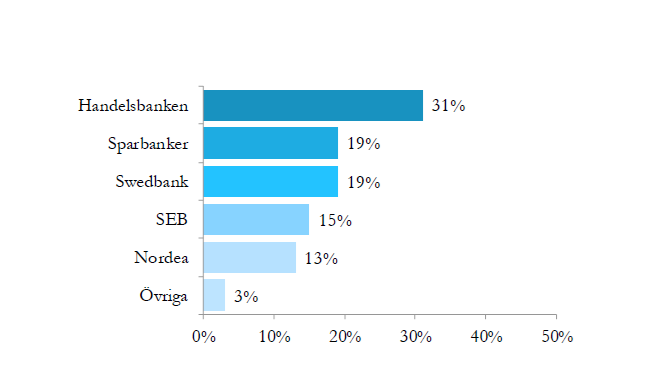 Respondenterna arbetar främst på Handelsbanken. I kategorin ”Övriga” ingår Danske Bank och Länsförsäkringar.