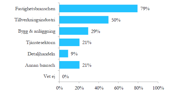 Företagens ökade lånebehov gäller framför allt fastighetsbranschen och tillverkningsindustrin medan det minskade behovet främst gäller bygg & anläggning. Eventuella skillnader jämfört med föregående mätning faller inom den statistiska felmarginalen.