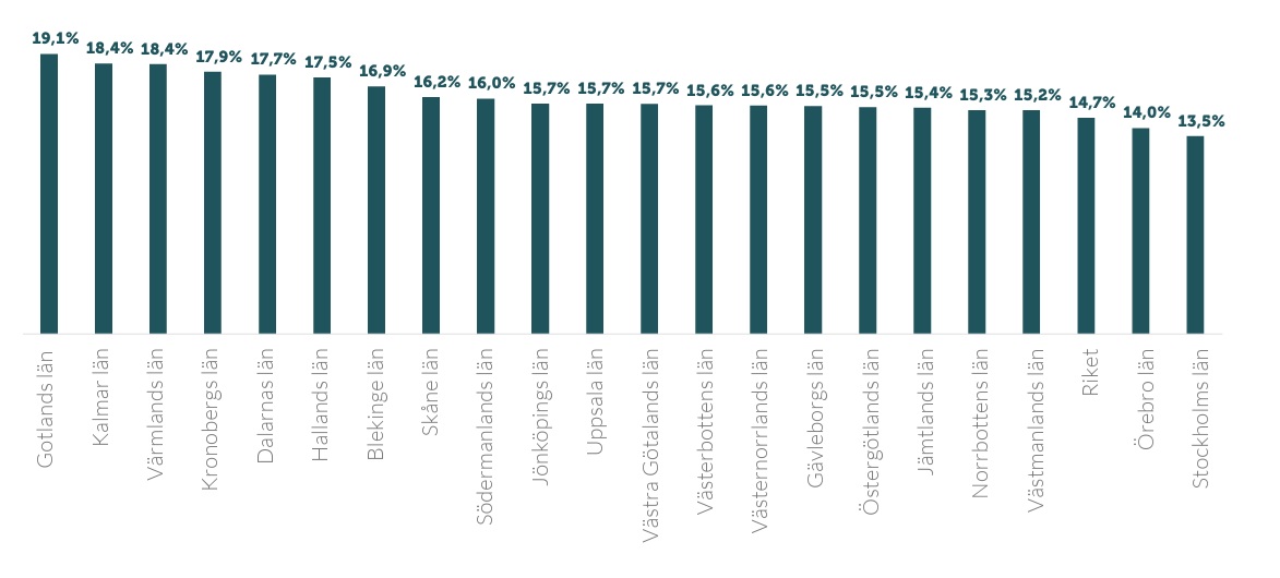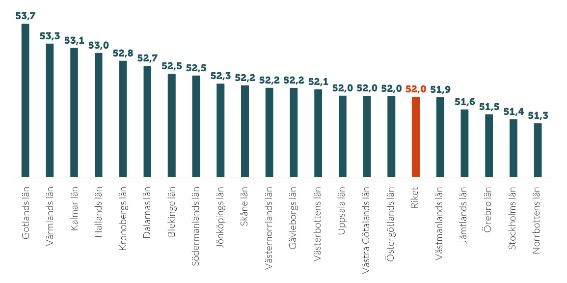 - Högst medelålder har företagsledarna i Gotlands, Värmlands och Kalmar län, medan medelåldern är lägst i Norrbotten. Lägst andel som är 55 år eller äldre är i Stockholms län.