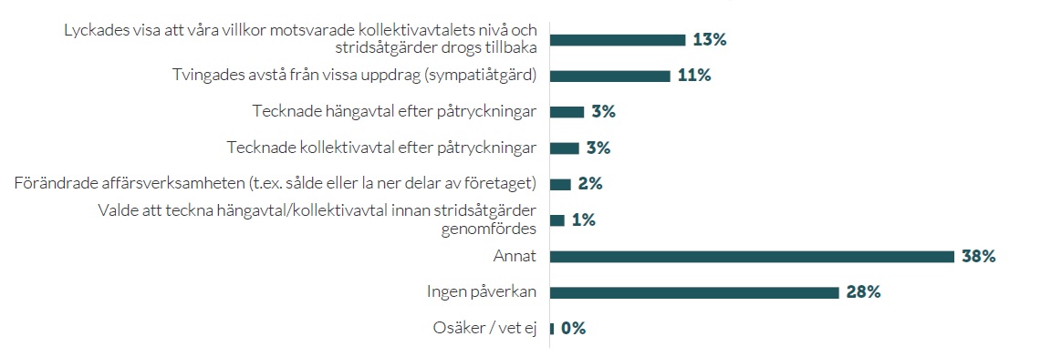 När kollektivavtal inte är norm bland småföretag innebär konfliktåtgärder i praktiken ofta att företag ansluter sig till kollektivavtalsmodellen genom konflikt snarare än genom frivillig anslutning.