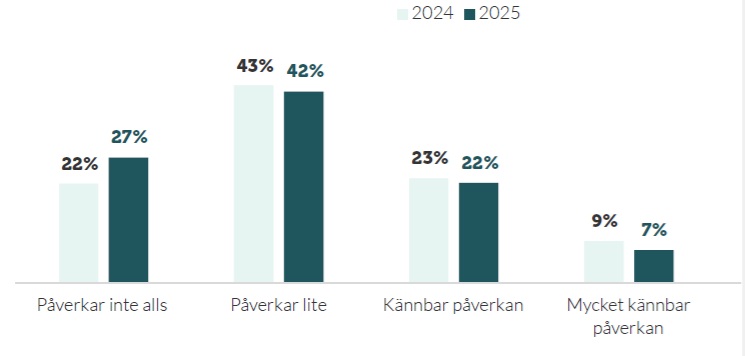 Företagarnas medlemspanel består av svenska småföretagare som svarar på frågor som berör deras företags förutsättningar. Till den här rapporten om elskatten har 1 504 företagare fått svara på ett batteri av frågor kopplade till elanvändning och elskatten. 1 460 har besvarat samtliga frågor. Deltagarna har en bred representation sett till olika branscher och över hela landet. Urvalet korrigeras så att det liknar den nationella företagarstrukturen, med hjälp av en modell baserad på SCB:s statistik på antal företagare i Sverige. Konkret görs detta genom att korrigerande vikter räknas fram för olika företagsstorlek (antal anställda), kön, ålder och bransch. Undersökningsperiod: 15 december 2025 till 8 januari år 2026.